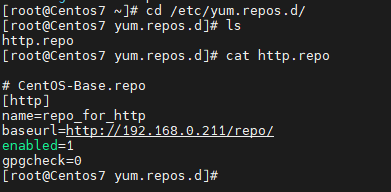 4)启动一台 Centos7 服务器,来到 /etc/yum.repos.d 目录下,删除这个目录下的所有文件,创建一个文件 http.repo,写入以下内容。