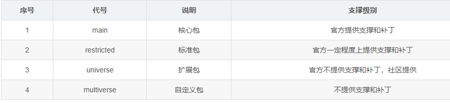 - deb 或者 deb-src:前者代表软件的位置,后者代表软件的源代码的位置
