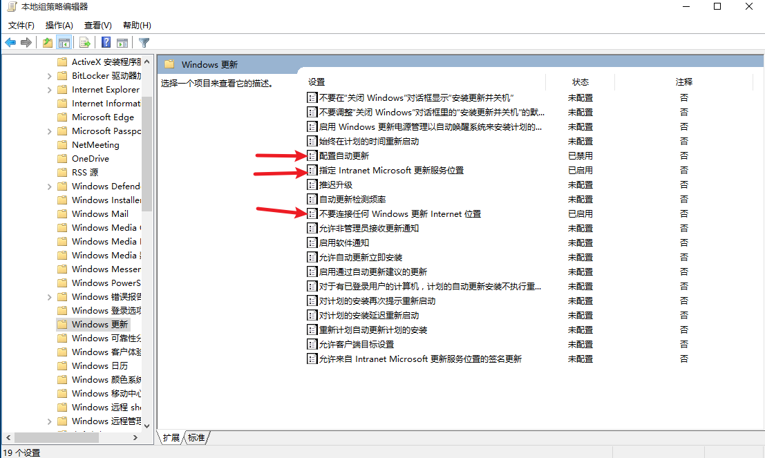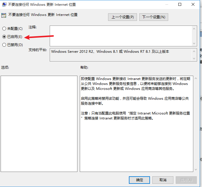 3)不要连接任何 Windows 更新 Internet 位置:启用