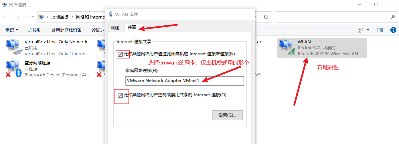 1)设置网络连接共享,点击确定,**他会把 VMnet 1 网卡的 ip 地址更改掉。然后我们再把 VMnet 1 改回 192.168.17.1