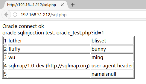 echo "oracle sqlinjection test: oracle_test.php?id=1</br>";