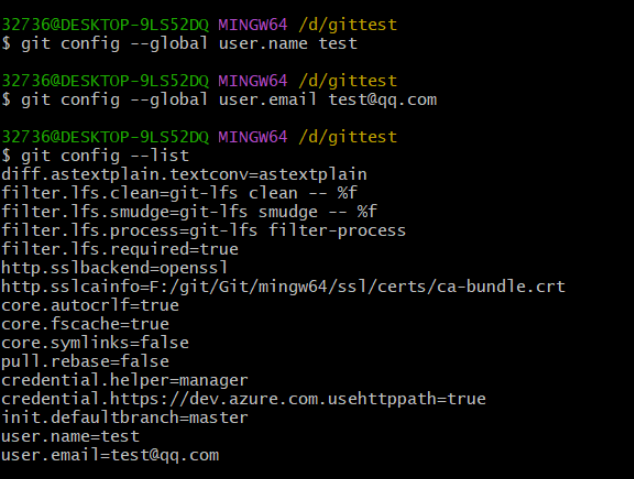 git config --global user.name "test" # 配置全局用户名